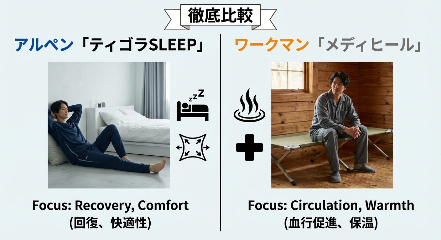 アルペン「ティゴラSLEEP」vs ワークマン「メディヒール」リカバリーウェアの評判・違いを徹底比較