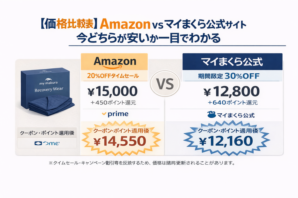 【価格比較表】Amazon vs マイまくら公式サイト、今どちらが安いか一目でわかる