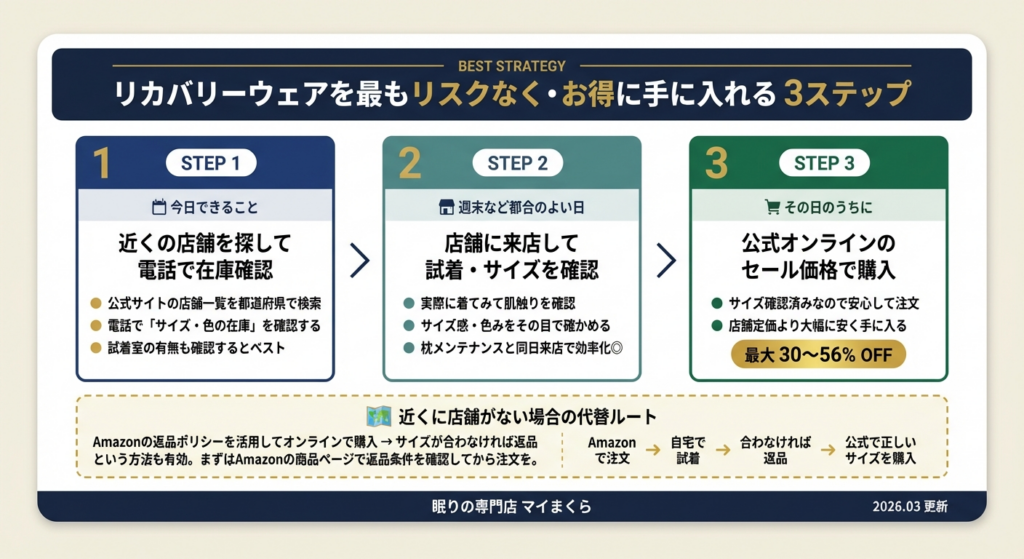 もし試着を重視するなら、このルートが今のところいちばん堅実で賢い買い方と言えるでしょう。