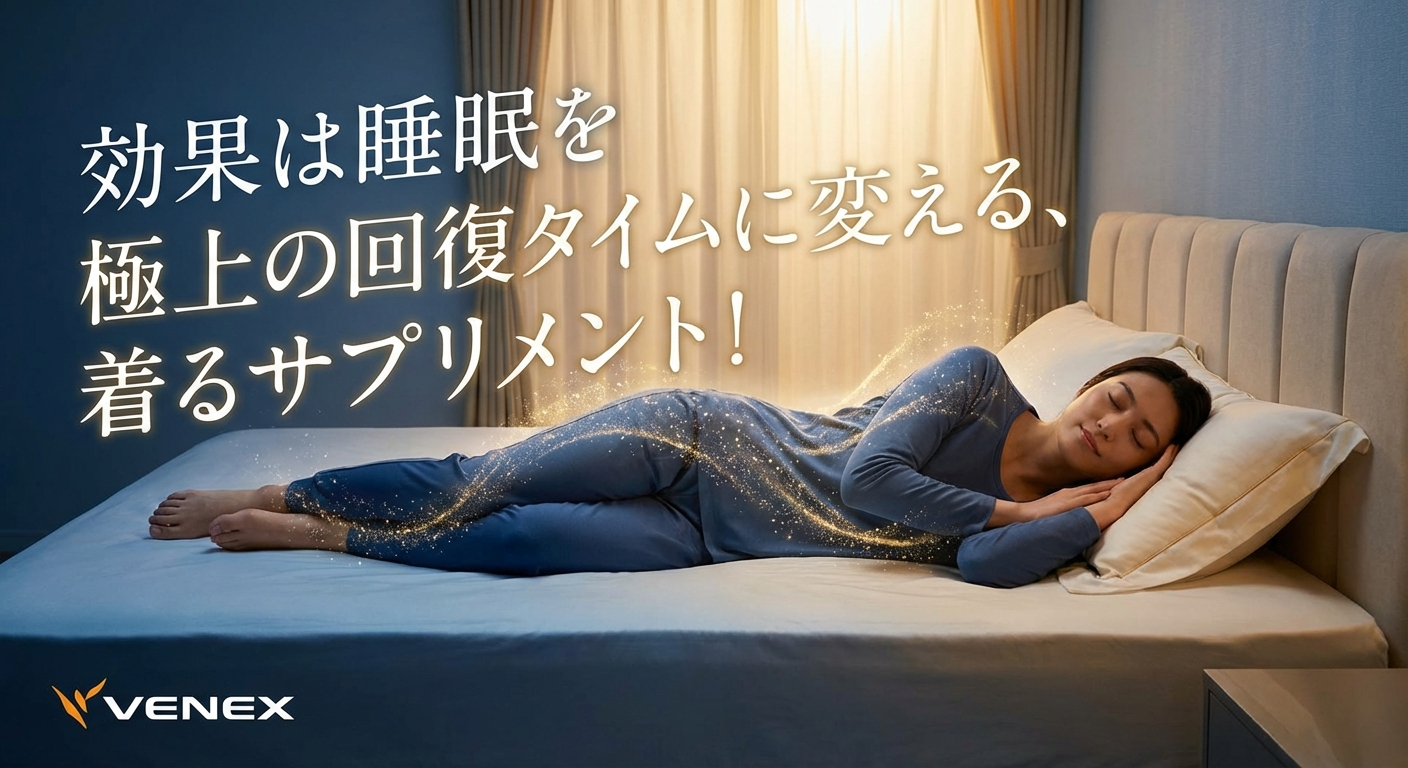 - いきなり上下セット(パジャマ)を購入するのが難しい場合は、アイマスクやネックウォーマー、レッグコンフォートなどの「小物(アクセサリー)」から試すのがおすすめです。比較的安価にVENEXの効果を体感できます。